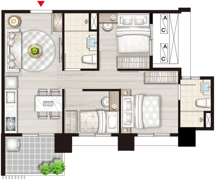 3 房|27 坪|雙衛、無柱設計、正正方方真三房